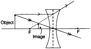 (c) An object is placed in front of a lens between its optical centre and the focus and forms a virtual, erect and diminished image.