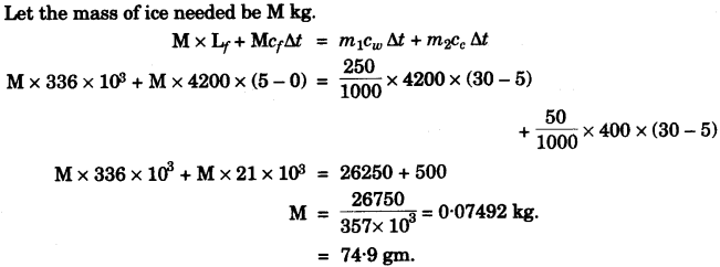 (c) Heat lost by ice = Heat gained by water + Heat gained by copper