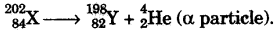(ii) The nucleus \(_{ 84 }^{ 202 }{ X } \) emits an alpha particle and forms the nucleus Y. Represent this change in the form of an equation.