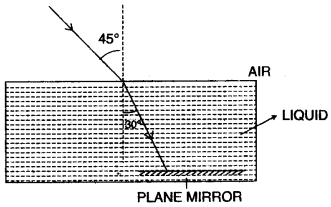 (c) A ray of monochromatic light enters a liquid from air as shown in the diagram given below :