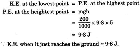 (a) A ball of mass 200 g falls from a height of 5 m. What will be its kinetic energy when it just reaches the ground ? (g = 9.8 ms-2). [2]