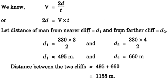 (b) (i) A man standing between two cliffs produces a sound and hears two successive echoes at intervals of 3s and 4s respectively. Calculate the distance between the two cliffs.