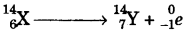 (c) A certain nucleus X has a mass number 14 and atomic number 6. The nucleus X changes to 7Y14 after the loss of a particle.