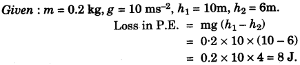 (b) A body of mass 0.2 kg falls from a height of 10m to a height of 6m above the ground. Find the loss in potential energy taking place in the body, [g = 10 ms-2] [2]