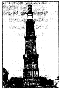 (b) Qutub Minar — It began to be built in AD 1199. It was started by Qutub-ud-din Aibak and was dedicated to the Sufi saint, Qutb-ud-din Bakhtiyar Kaki, who was greatly venerated by the people of Delhi. The structure was completed in 1230 bylltutmish. Verses from the Holy Quran and some intricate carvings, floral motifs are inscribed on this tower.