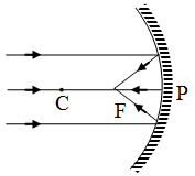 A point object lying on the principal axis. Rays come parallel to the principal axis and after reflection from the mirror actually meet at the focus F.