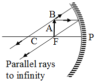 Fig. Concave mirror: point object at infinity, image at focus. - Object Beyond Centre of Curvature