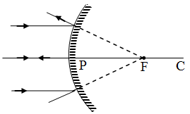 Rays come parallel to the principal axis and after reflection from the mirror, appear to diverge from focus F behind the mirror.