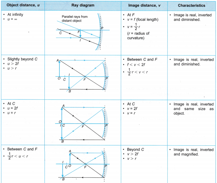 Image formation by Spherical mirror in different cases