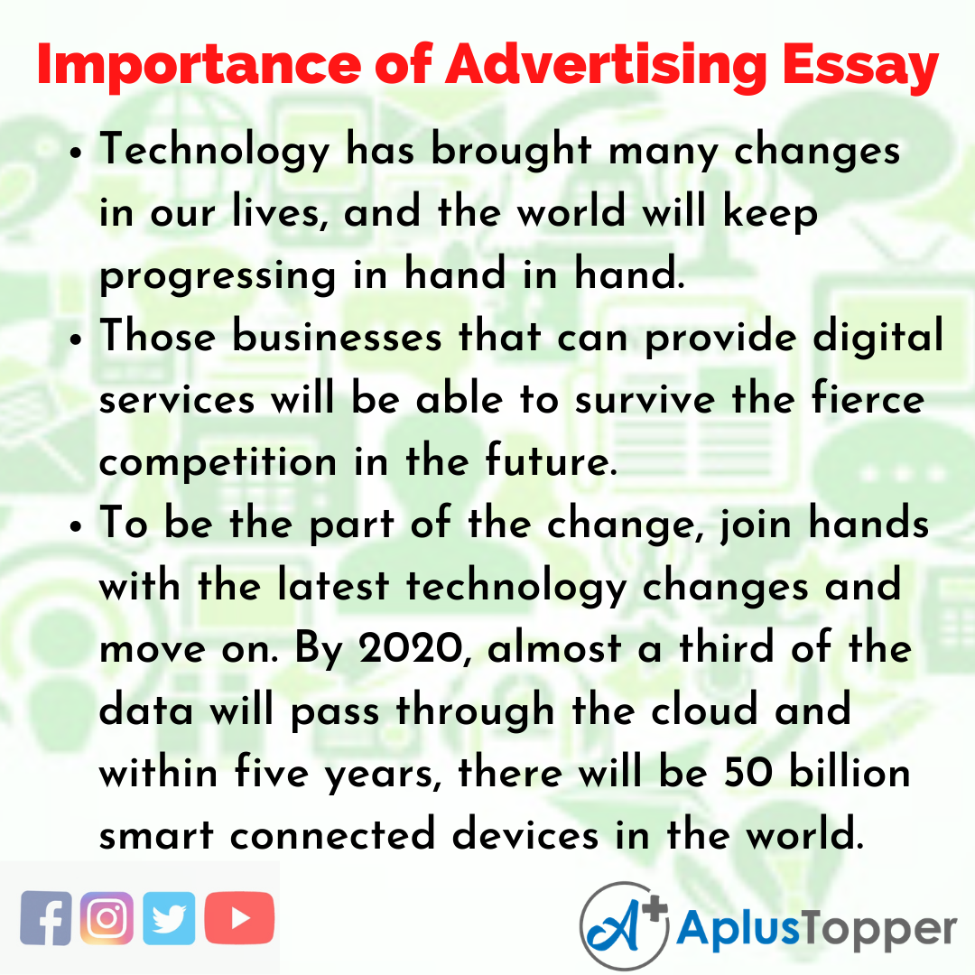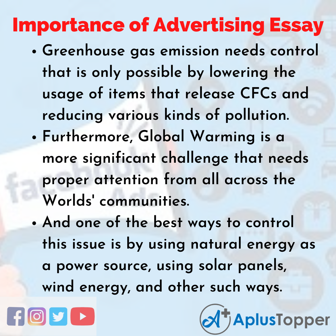 Long Essay on Importance of Advertising is usually given to classes 7, 8, 9, and 10.