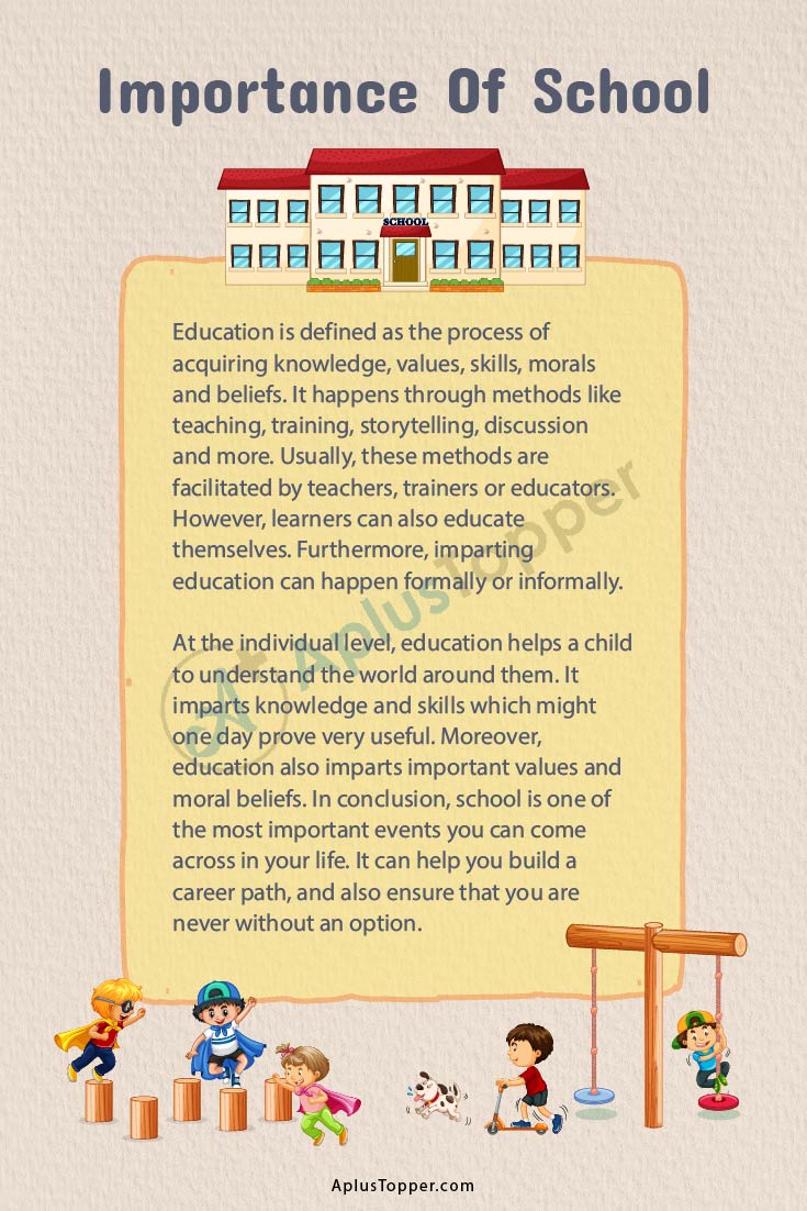 Essays are part of the academic curriculum and enable students to express their views on a plethora of topics. Some of these may be abstract while others may reflect real-world issues. In this article, we shall help you draft an essay about the importance of school, its guidelines, samples and more. We shall also reflect on current issues that plague the education system in India.