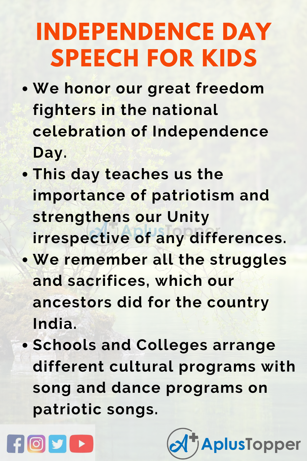 Long And Short Speeches on Independence Day for Kids In English For Kids And Students