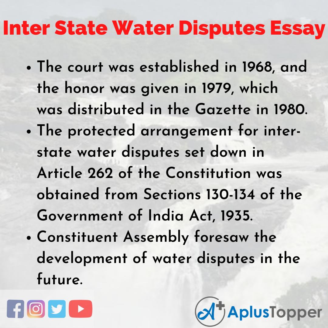Short Essay on Inter State Water Disputes 150 Words in English