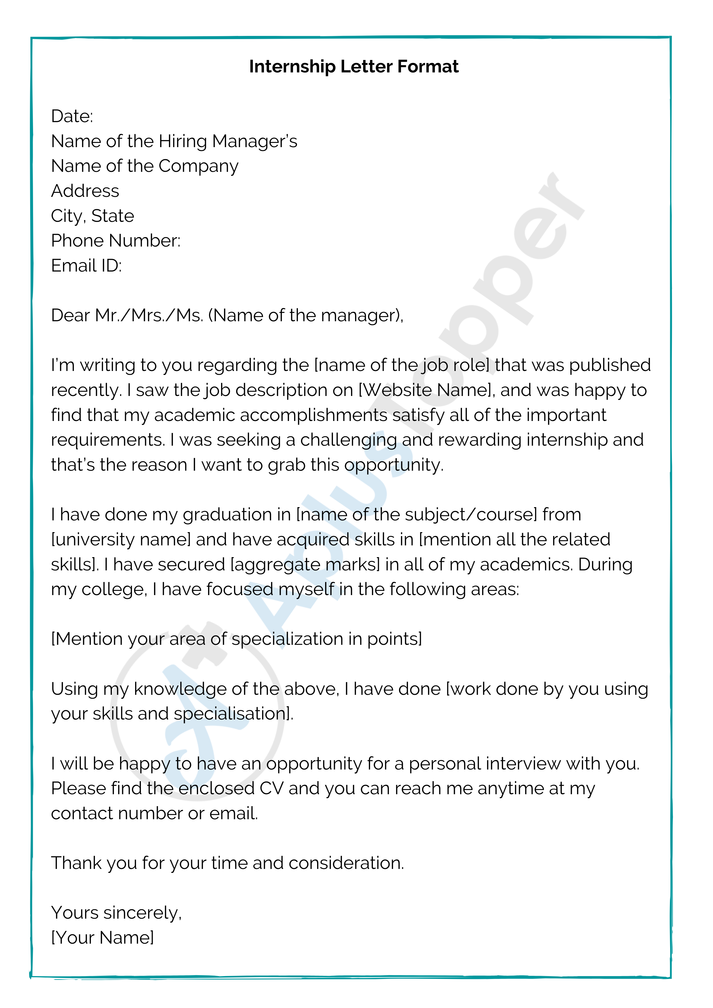 Before we head towards writing the internship letter, let us see what are the points we should include in the cover letter.