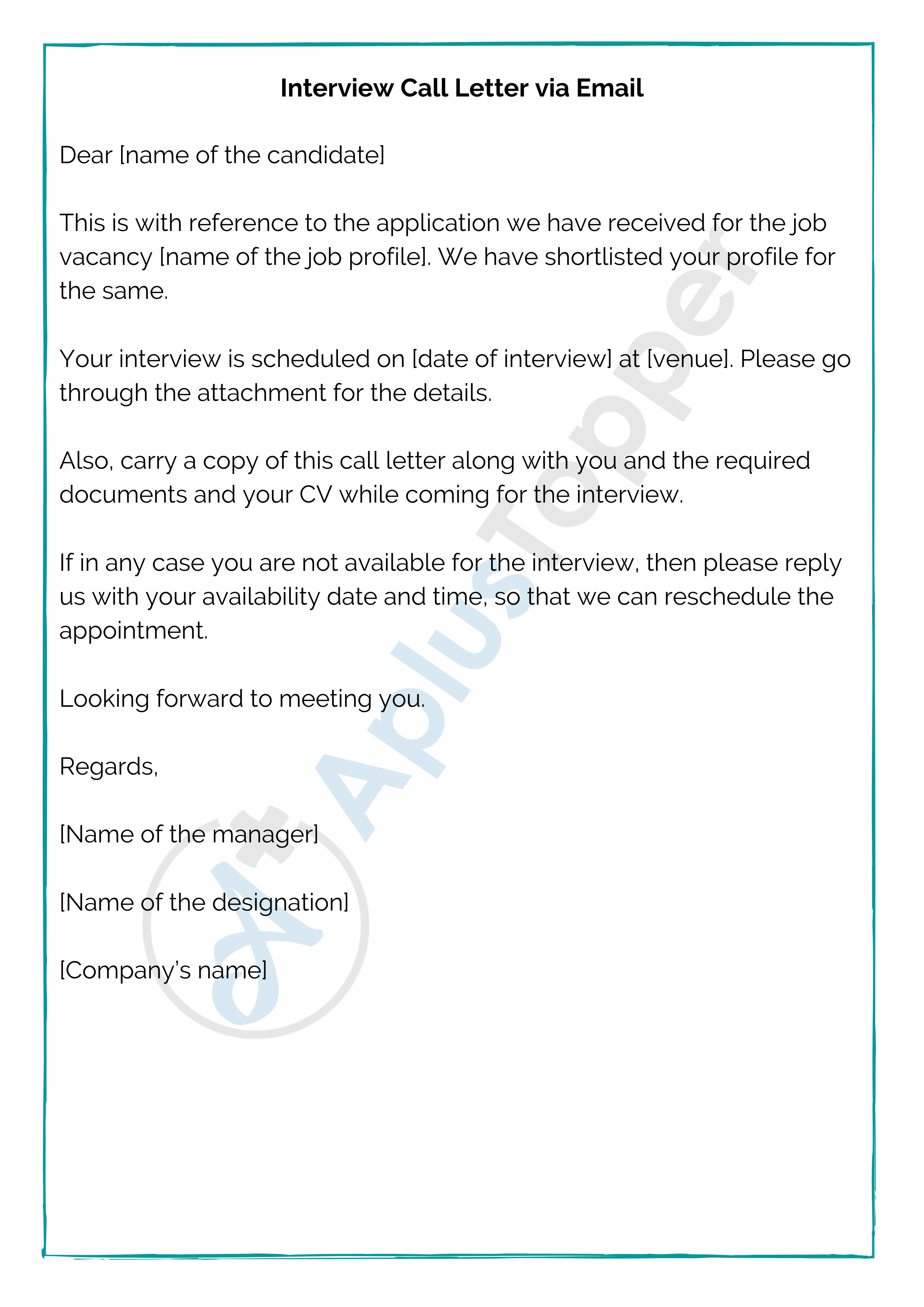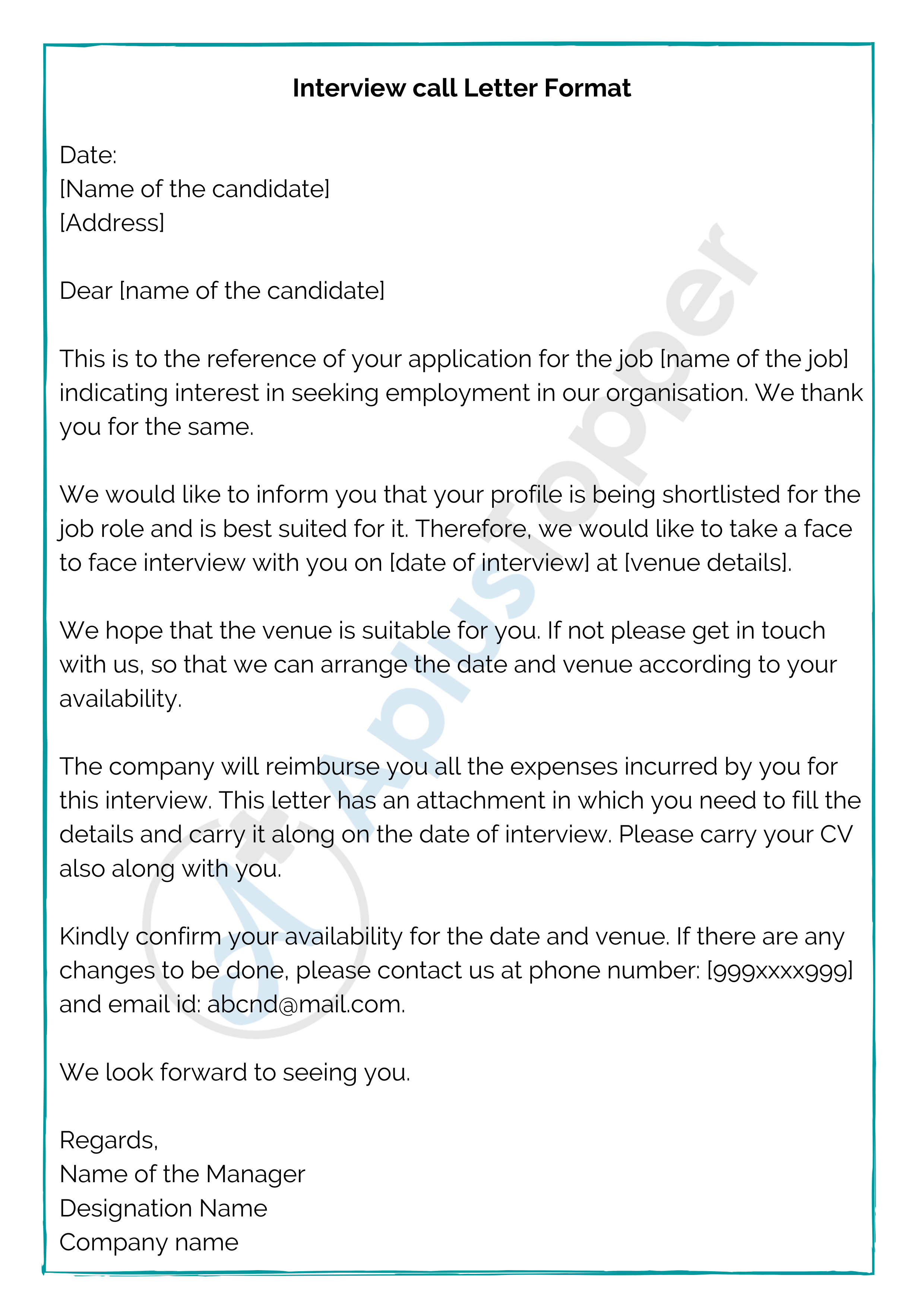 The format of the interview calling letter is formulated by the company itself. Not all companies have the same formats. It varies from company to company.