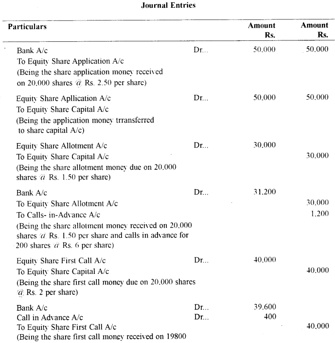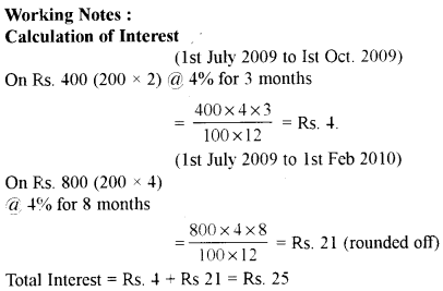 Another shareholder ‘B’ holding 100 shares did not pay the final call till the date of the Balance Sheet. According to the Articles of Association of the company, interest at the rate of 4% p.a. is payable by the company on any calls in advance. The interest was paid by the company to the shareholder on 1st Feb.2010.