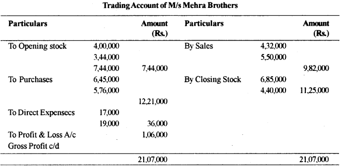 Value of Closing stock = Rs. 40,000+Rs. 6,45,000 =Rs. 6,85,000