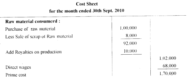 From the above information, you are required to prepare a Cost Sheet showing the total cost for the month ended 30th September 2010.