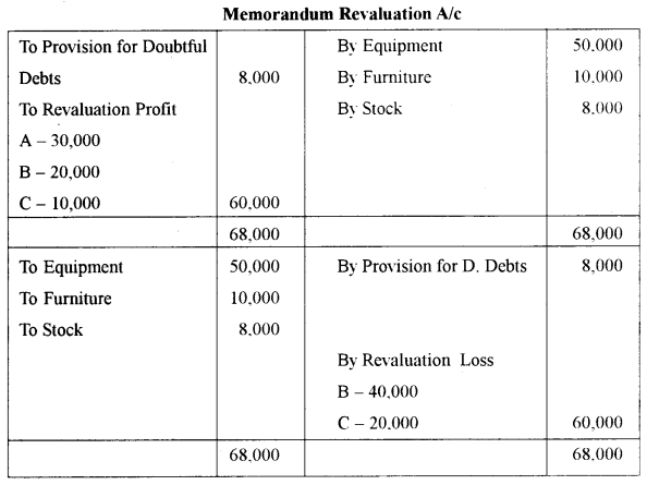 (a) Equipment to be revalued at Rs. 3,50,000 and furniture to appreciate by Rs. 10,000.