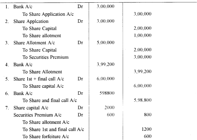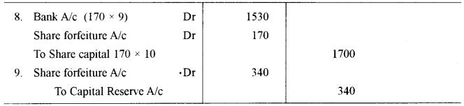 Applications were received for 150000 shares. Allotment was made pro-rata to all applicants. Sudhir who had applied for 300 shares failed to pay allotment and call money. His shares were forfeited after the first and the final call. Of these. 170 shares w ere reissued to Pramod at Rs. 9 per share fully paid.
