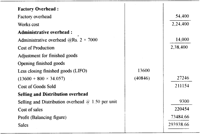 Note : All calculations are to be made to the nearest rupee and sales are made on the basis of LIFO principle.