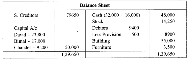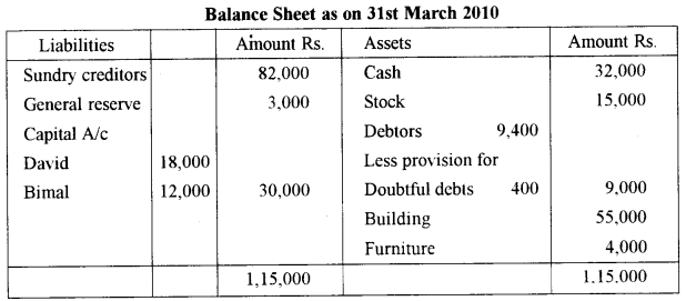 David and Bimal are partners sharing profits and losses in the ratio 3:2. Their Balance Sheet as on 31st March 2010, was as follows :