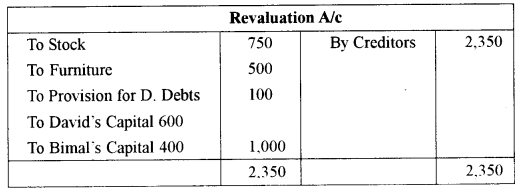 (iii) A creditor for Rs. 2,350 was paid off by Bimal privately for which he was not to be reimbursed.