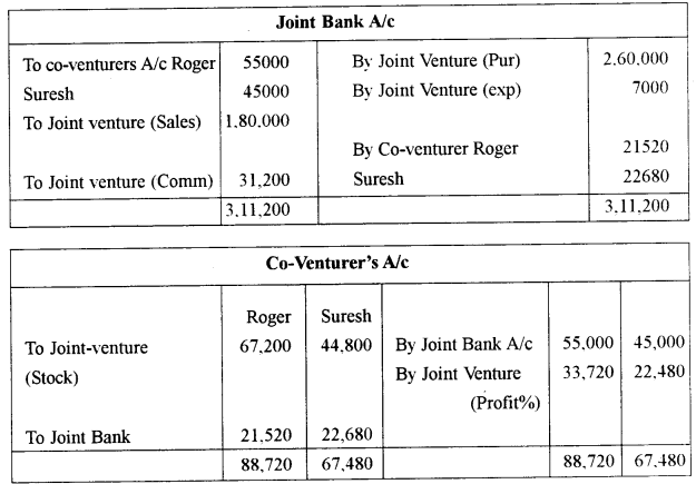 (ii) When unsold stock is taken over by a co-venturer the journal entry to be passed is