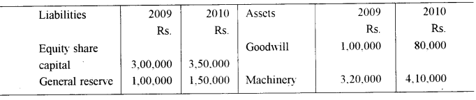 Given below is the Balance Sheet of Gurmeet and Company Limited as on 31st December 2009 and 31st December 2010 :