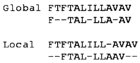 (b) (i) Global Vs local alignments : Illustration of global and local alignments demonstrating the ‘gappy’ quality of global alignments that can occur if sequences are insufficiently similar