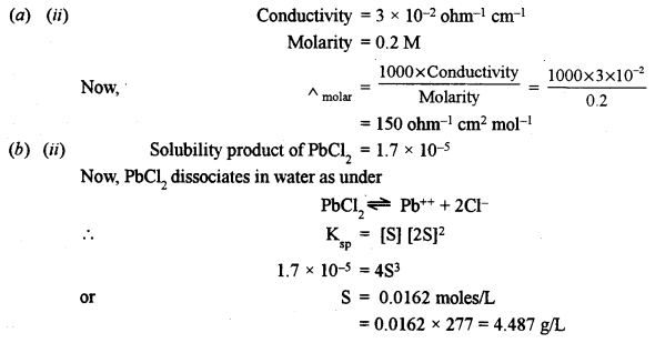(ii) The conductivity of 0.2 M KCl solution is 3 × 10-2 ohm-1cm-1. Calculate its molar conductance. [1]