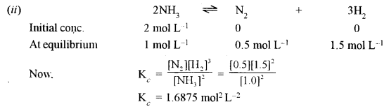 (ii) Two moles of NH3 are introduced into the one-litre flask in which it dissociates at high temperature as follows: