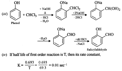 (iii) Give a balanced equation for the preparation of salicylaldehyde from phenol.