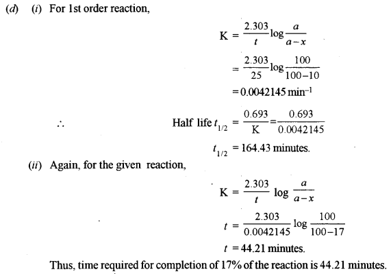 (d) In a first-order reaction, 10% of the reactant is consumed in 25 minutes. Calculate: [2]