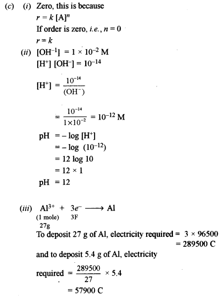(iii) Calculate the number of coulombs required to deposit 5.4 g of Al when the electrode reaction