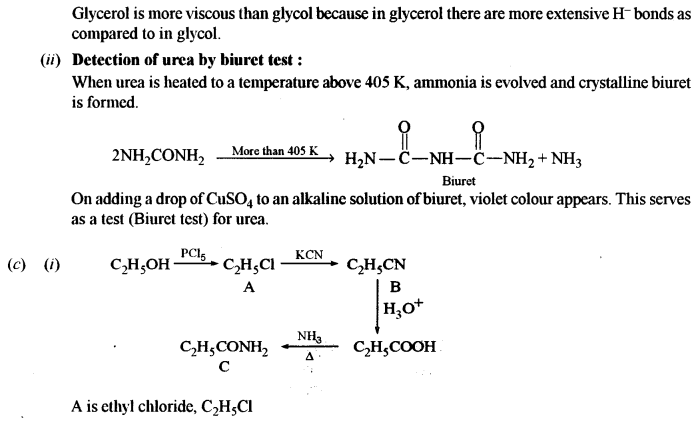 (b) (i) Glycerol (propane 1, 2, 3 triol) is more viscous than ethylene glycol (ethane 1, 2, diol). Explain [1]