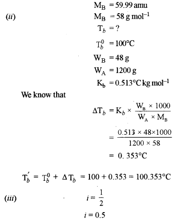 (ii) The molecular weight of an organic compound is 58 g mol-1. What will be the boiling point of a solution containing 48 grams of the solute in 1200 grams of water? [2]