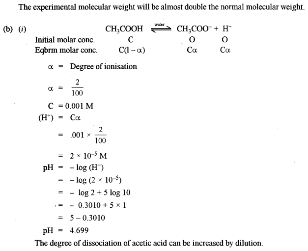 (iii) What will be the value of Van’t Hoff factor (i) of benzoic acid if it dimerises in aqueous solution? How will the experimental molecular weight vary as compared to the normal molecular weight? [1]
