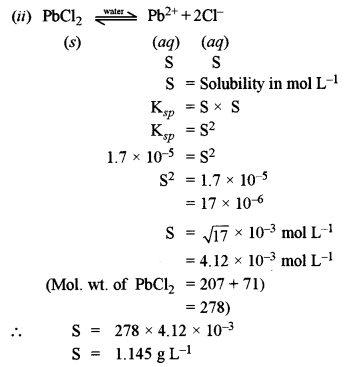 (ii) The solubility product of PbCl2 at 298K is 1.7 × 10-5. Calculate the solubility of PbCl2 in g/lit. at 298K. [2]