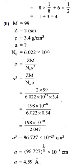 (ii) A compound AB has a simple cubic structure and has molecular mass 99. Its density is 3.4 g cm-3. What will be the edge length of the unit cell? [2]