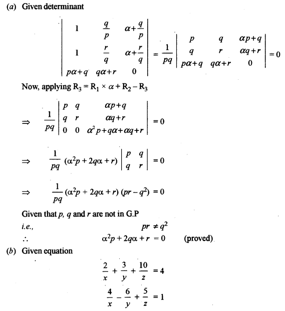 (a) Using properties of determinants, show that pα2 + 2qα + r = 0, given that p, q and r are not in GP and [5]
