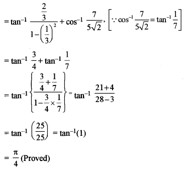 \(2 \tan ^{-1} \frac{1}{5}+\cos ^{-1} \frac{7}{5 \sqrt{2}}+2 \tan ^{-1} \frac{1}{8}=\frac{\pi}{4}\)