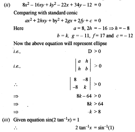 (ii) Find the values of k, if the equation 8x2 – 16xy + ky2 – 22x + 34y = 12 represents an elhpse. [3]