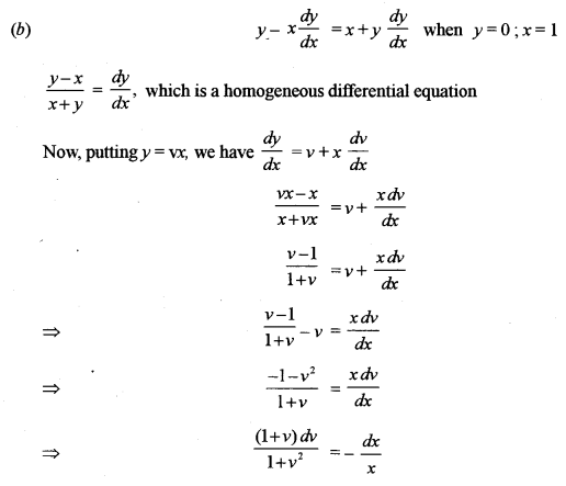 \(y-x \frac{d y}{d x}=x+y \frac{d y}{d x}, \text { when } y=0 \text { and } x=1\)