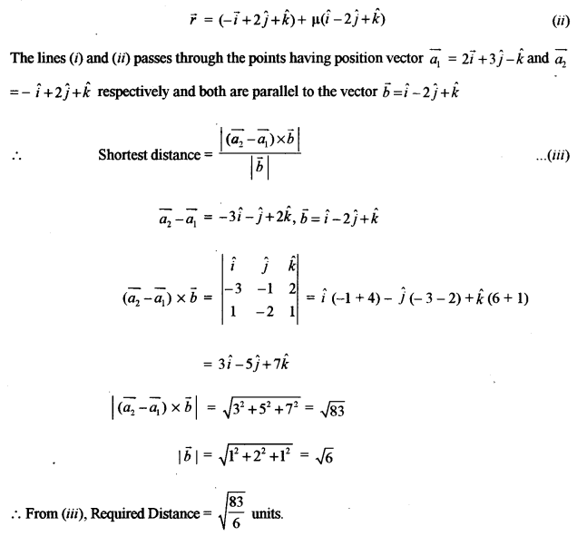 (a) \(\vec{r}=2 \hat{i}+3 \hat{j}-\hat{k}+\lambda(\vec{i}-2 \hat{j}+\hat{k})\) …(i)