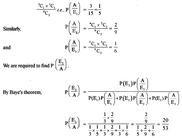 (b) Bag A contains 2 white, 1 black and 3 red balls, Bag B contains 3 white, 2 black and 4 red balls and Bag C contains 4 white, 3 black and 2 red balls. One Bag is chosen at random and 2 balls are drawn at random from that Bag. If the randomly drawn balls happen to be red and black, what is the probability that both balls come from Bag B? [5]