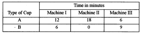 (b) A manufacturer manufactures two types of tea-cups, A and B. Three machines are needed for manufacturing the tea-cups. The time in minutes required for manufacturing each cup on the machines is given below: