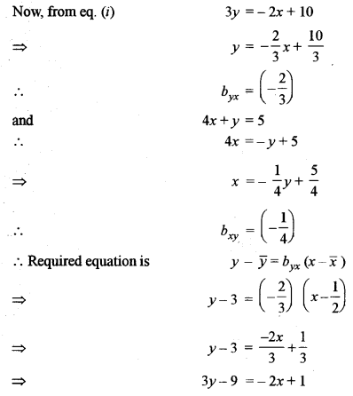 (iv) Two regression lines are represented by 2x + 3y – 10 = 0 and 4x + y – 5 = 0. Find the line of regression of y on x. [3]