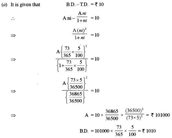 (a) If the difference between Banker’s discount and True discount of a bill for 73 days at 5% per annum is ₹ 10, find
