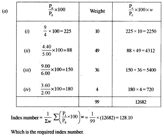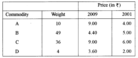 (a) The price quotations of four different commodities for 2001 and 2009 are as given below. Calculate the index number for 2009 with 2001 as the base year by using a weighted average of price relative method.